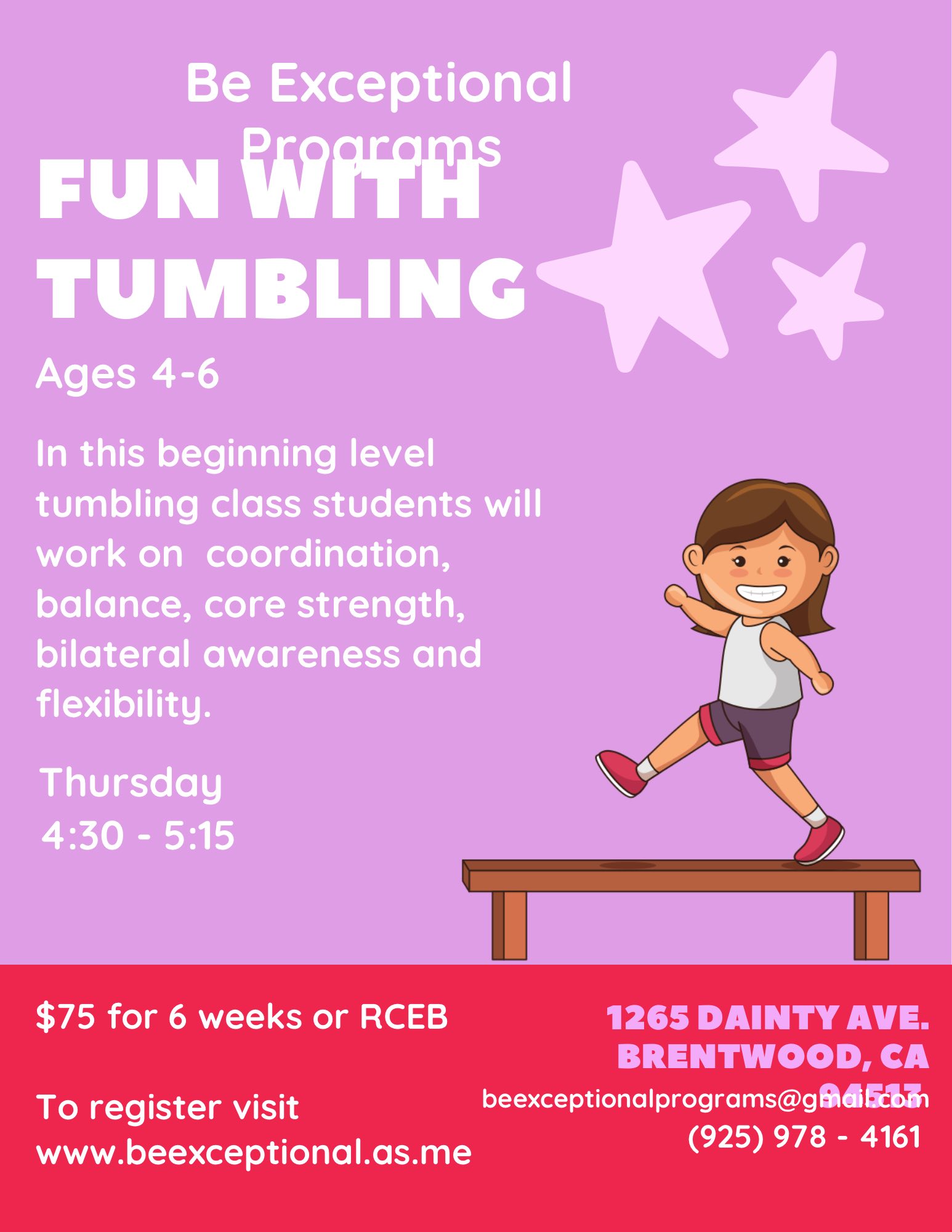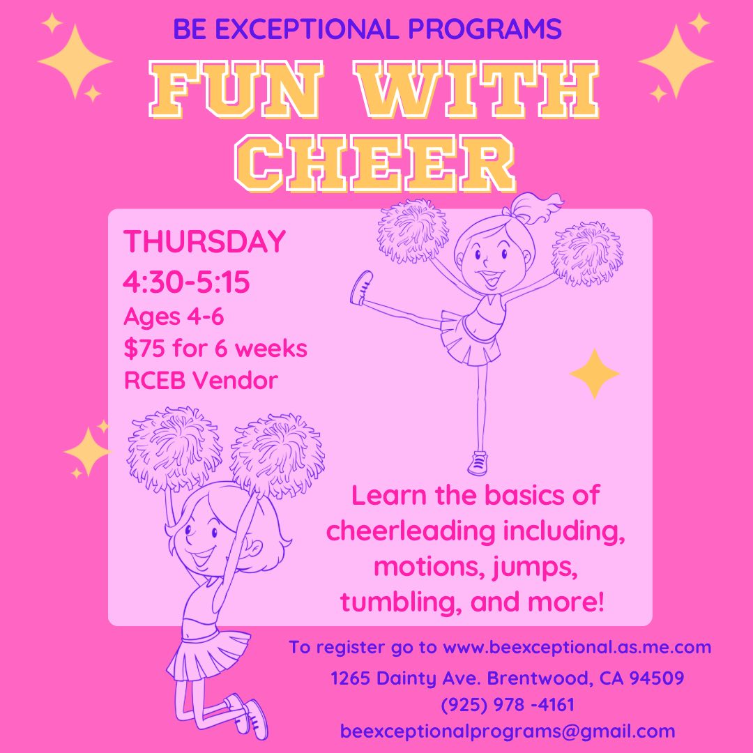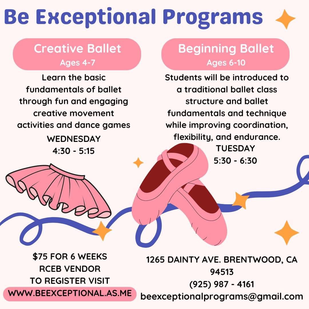 Here are our upcoming classes and locations in our Be Exceptional site at 1265 Dainty Rd in Brentwood. The following classes are $75 for six weeks. As we are RCEB vendors, the cost is covered for regional center clients.